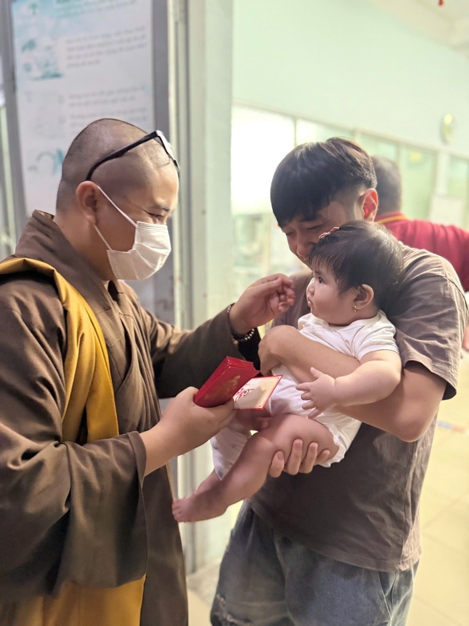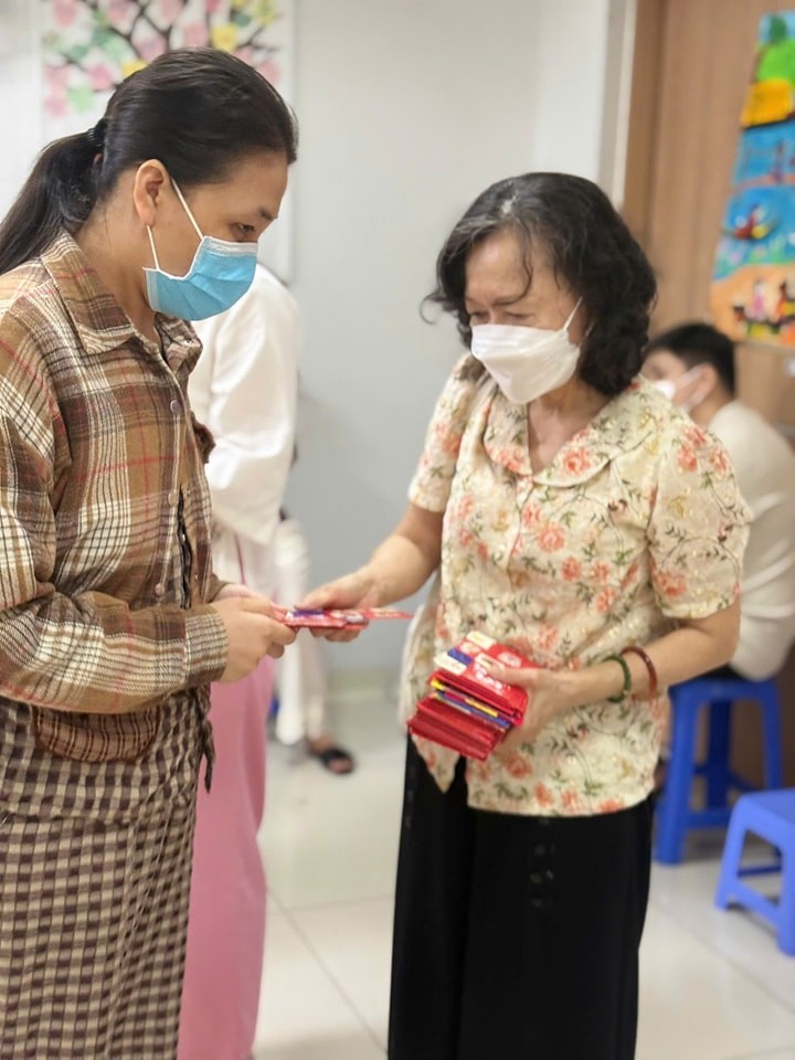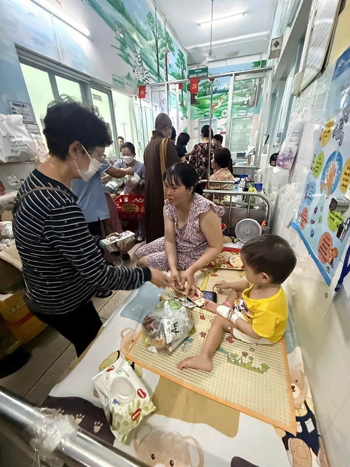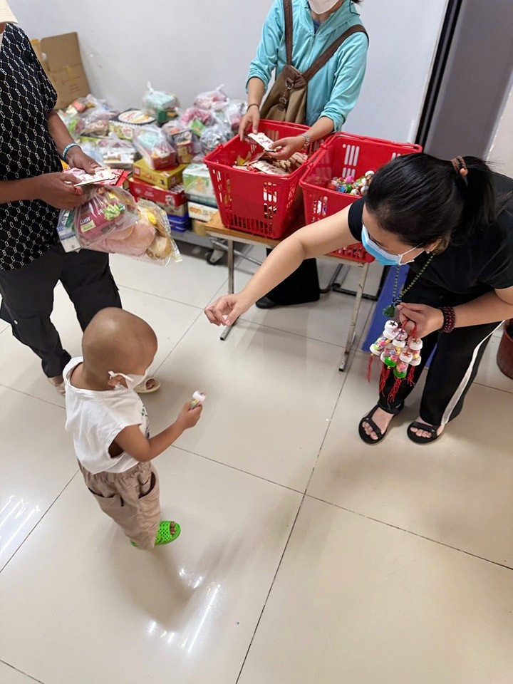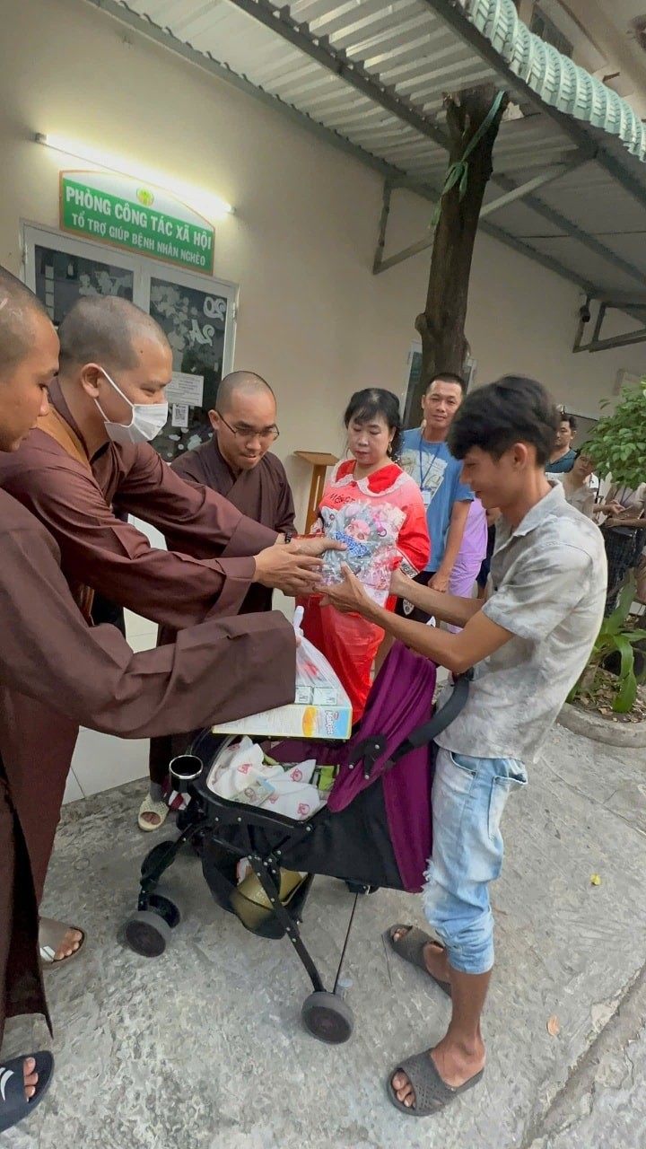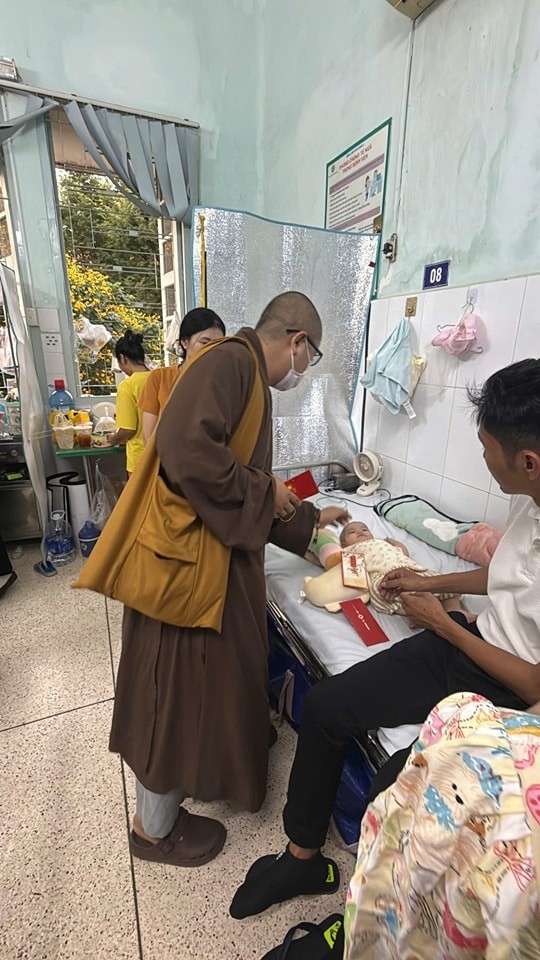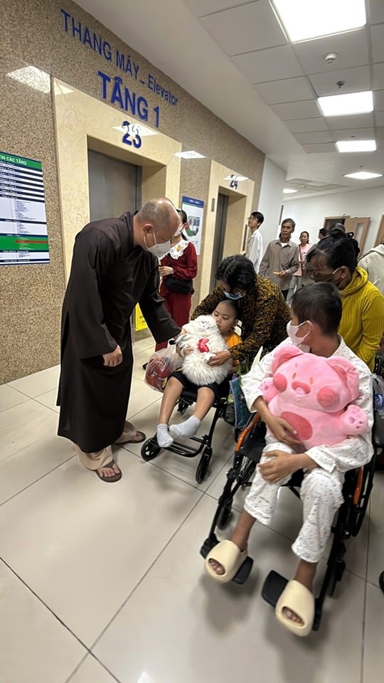 Với mong muốn mang chút ấm áp đầu năm đến các bệnh nhi, ngày 07-01 năm Bính Ngọ, chư Tăng và Phật tử đã đến thăm và trao tặng 500 phần bánh kẹo, gấu bông cùng 950 phong bì, mỗi phong bì trị giá 200.000 đồng, gửi đến các em và gia đình. Mỗi phần quà là một lời chúc bình an, là sự động viên để các em thêm vững vàng trong những ngày điều trị còn phía trước.