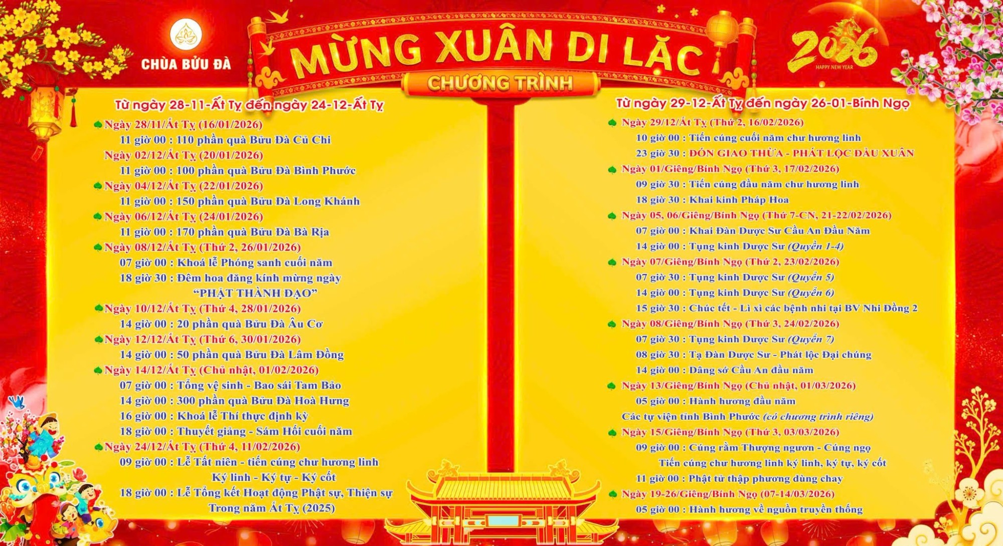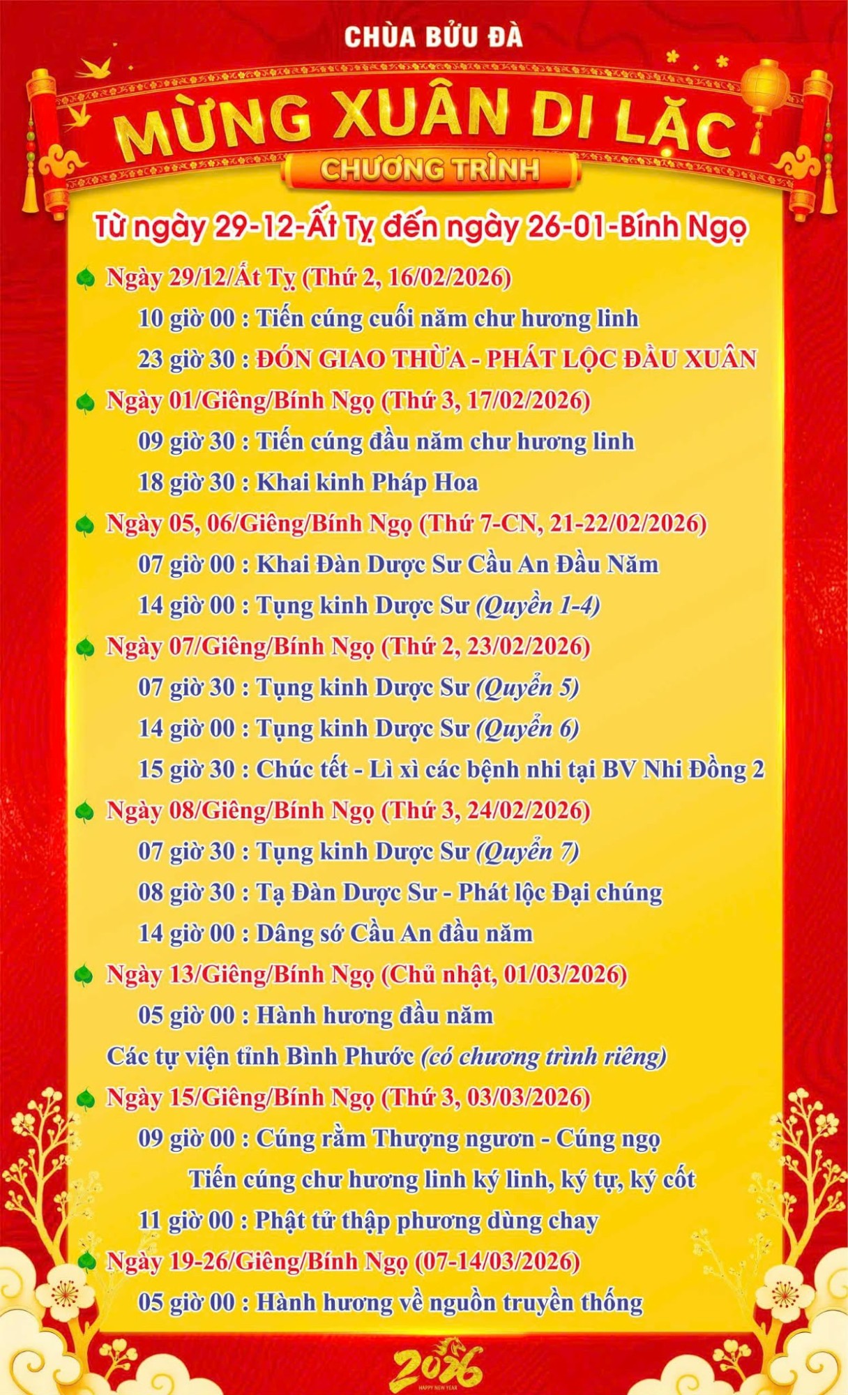 CHÙA BỬU ĐÀ: CHƯƠNG TRÌNH TẾT NGUYÊN ĐÁN - XUÂN BÍNH NGỌ - 2026