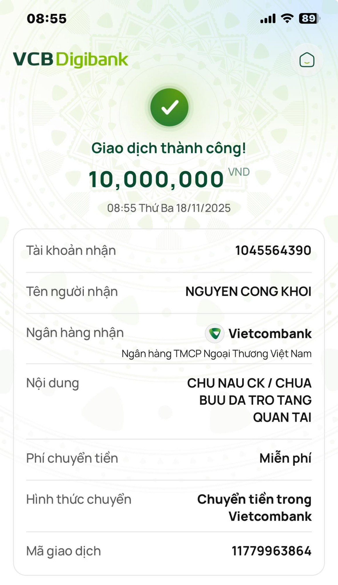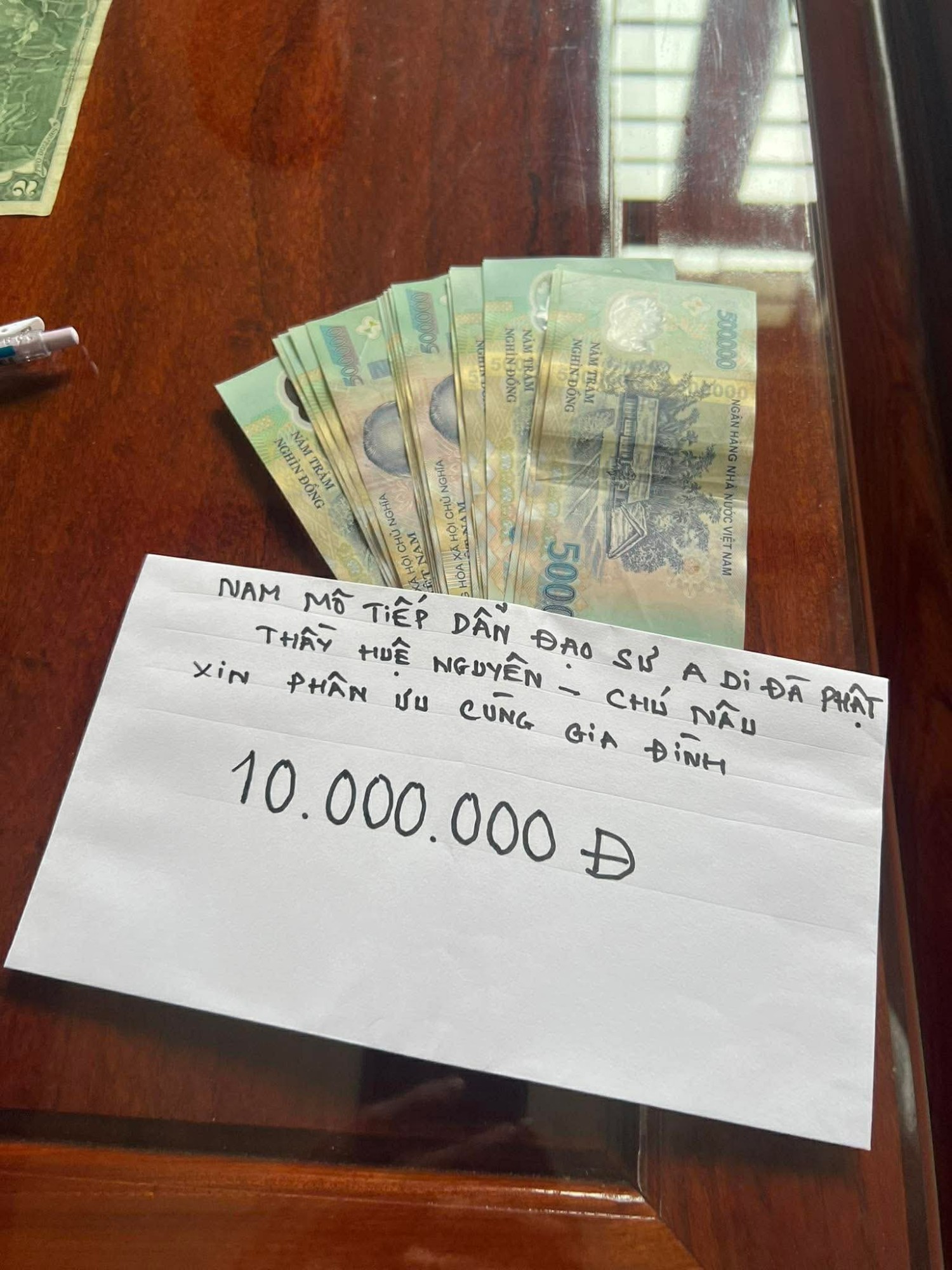 Lần 1: 10.000.000 đồng từ Chùa Bửu Đà hỗ trợ mua áo quan.