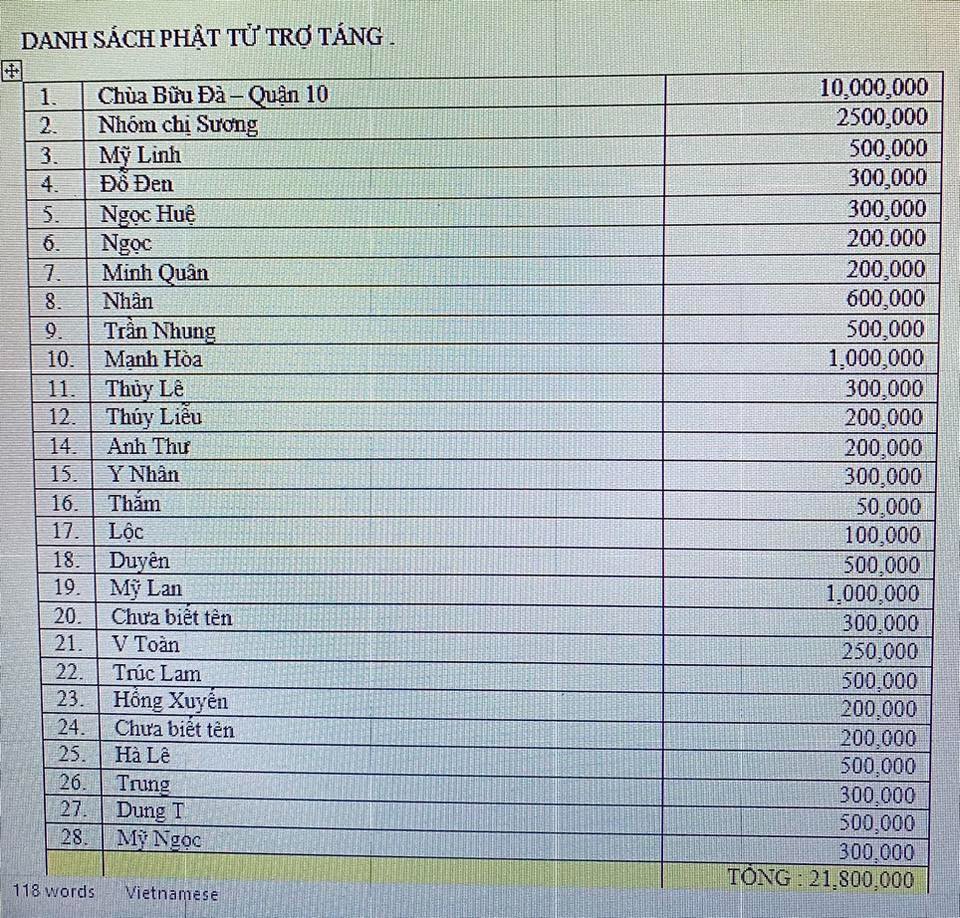 Lần 2: 11.800.000 đồng do quý Phật tử đóng góp thêm.
