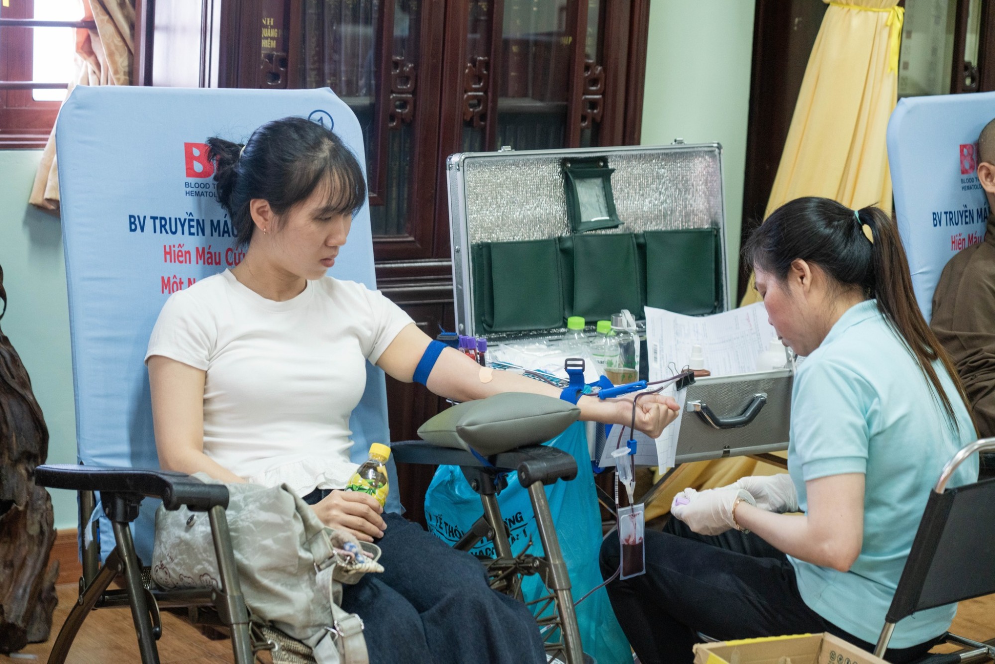Khác với sự nhộn nhịp thường ngày, buổi hiến máu tại chùa mang một ý nghĩa thật đặc biệt. Từng giọt máu cho đi là sự sẻ chia về sự sống và là hành động thực hiện tâm từ bi của người con Phật hướng về cộng đồng.